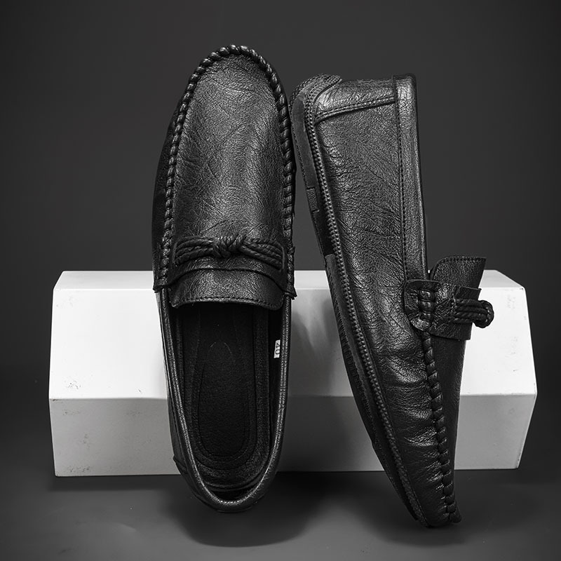 British Style Men'S Slip-On Shoes | Trendy Retro Loafers Casual Moccasins for Men, Upper, PVC Sole, Fabric Insole