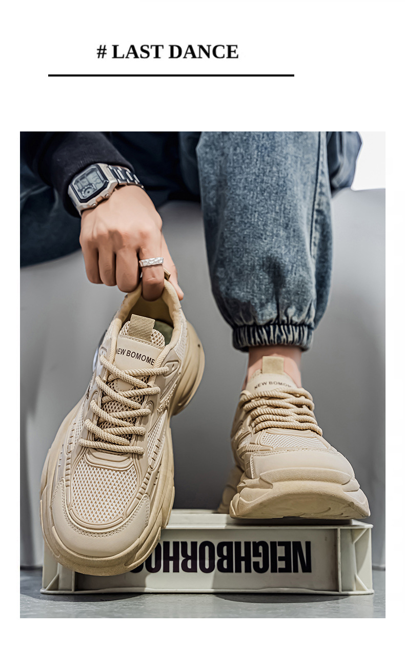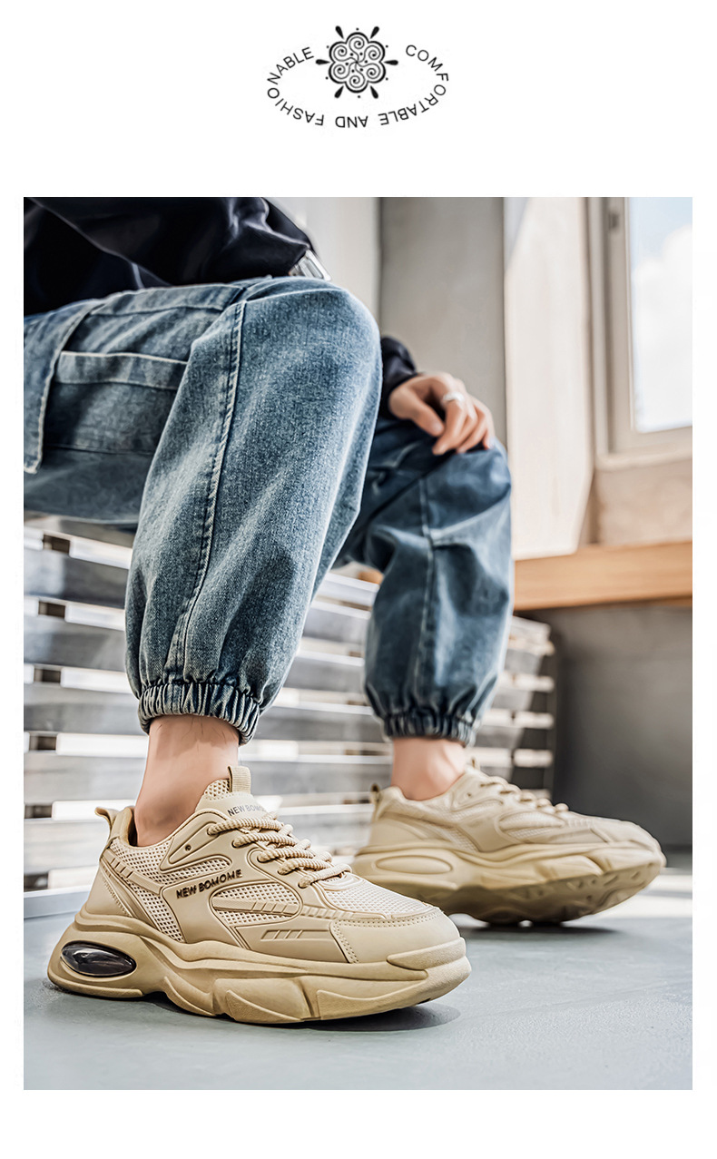 Men's & Unisex Thick-Soled Sneakers - Breathable Upper & PVC Sole, Low-Top Lace-Up Casual Running Shoes Suitable for Gym,, Casual Attire - Heavy Tread Dad Sneakers