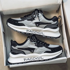 New Men'S High-top Dad Sneakers | Thick-soled, Breathable Mesh, Trendy Versatile Casual Shoes, and PVC Upper, Lace Closure, Spring/Fall Season