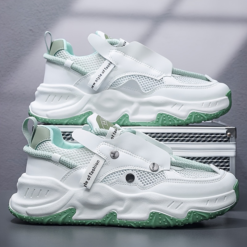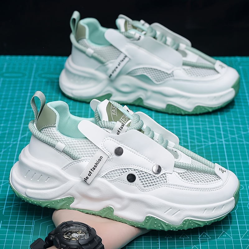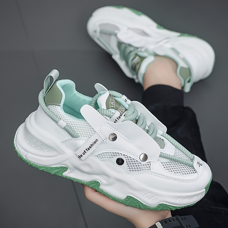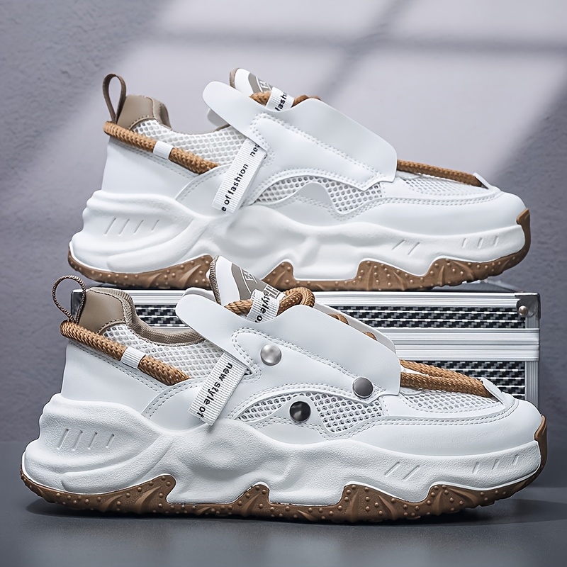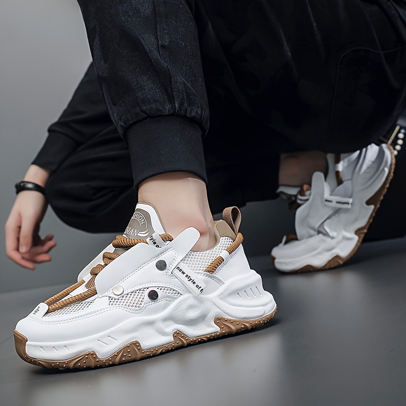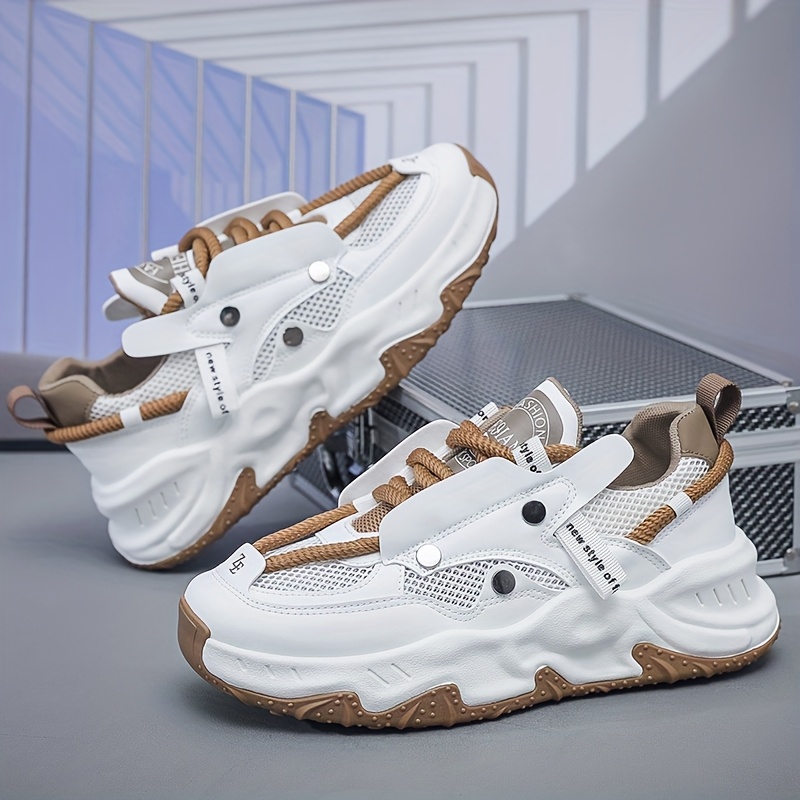 Men'S Low-Top Breathable Skate Sneakers - PU Mesh & Synthetic Upper, Durable PVC Sole, White with Brown Accents, Classic Fashion Sneakers for Casual, Running, Training & Workouts, Skate Shoes, Everyday Footwear, Sporty Design, Comfortable Fit