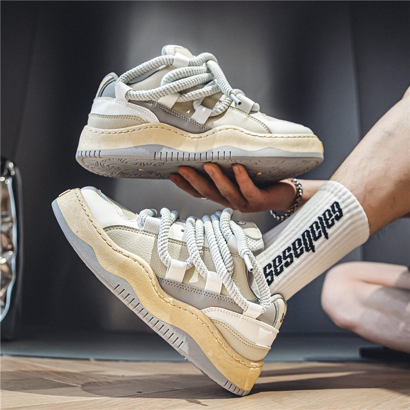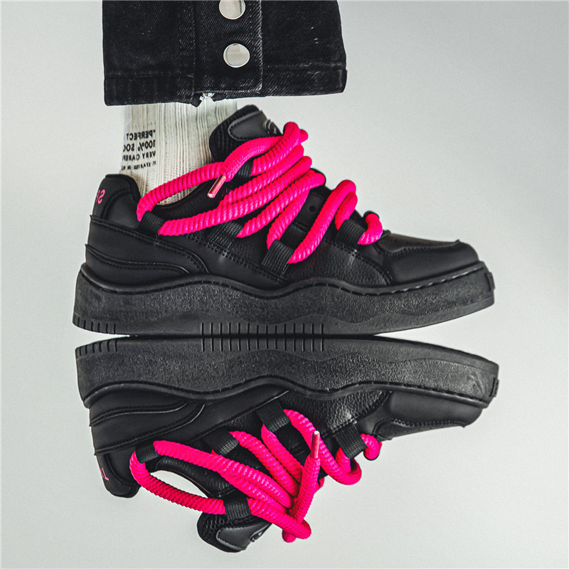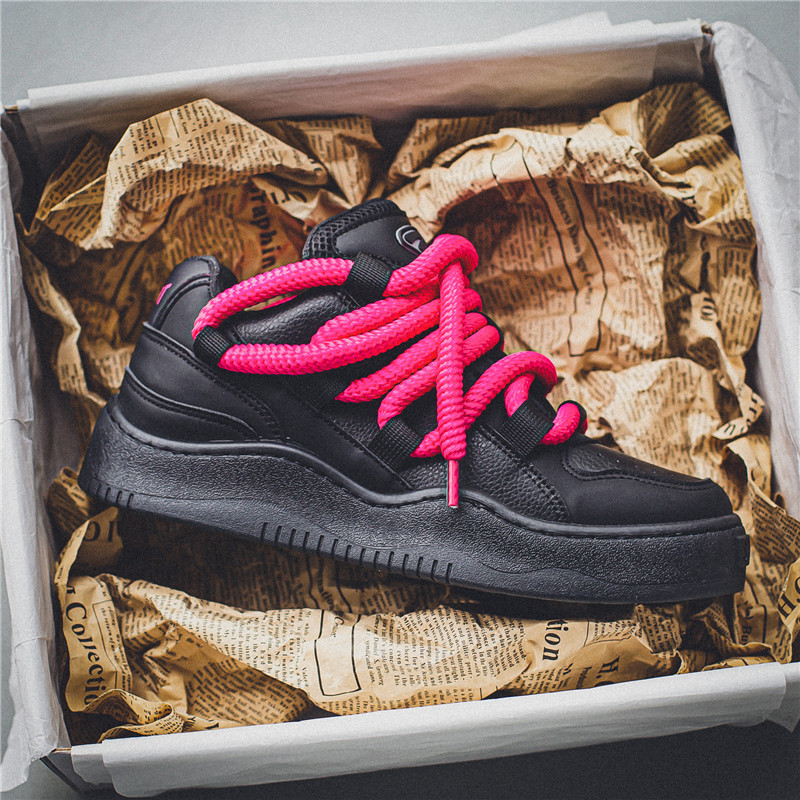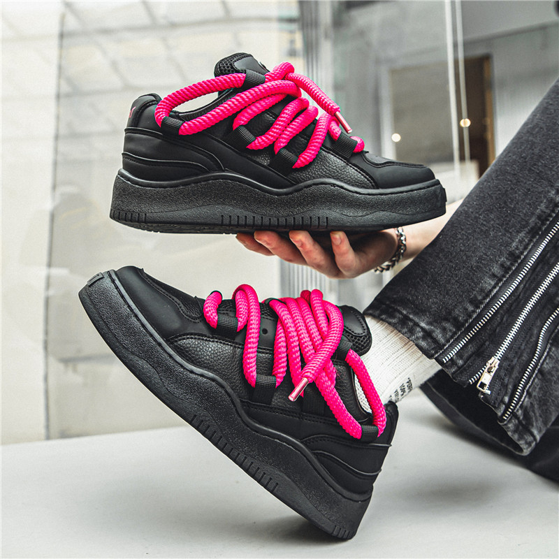 Men's Wide Width Chunky Platform Sneakers - Korean Retro Korean Wave K-Drama Inspired Shoes, Cushioned Heavy-Sole Lift (Pink Laces/Black) - Low-Top Lace-Up Casual Streetwear for Spring/Fall, Unisex-Friendly Footwear