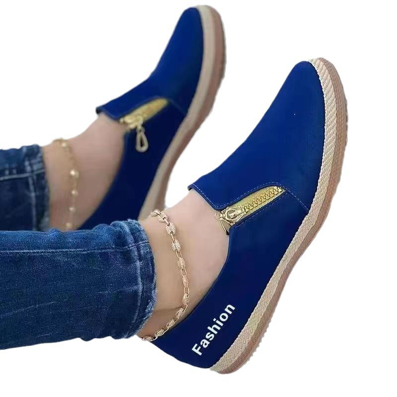 New Zipper Casual Women's Shoes, Solid Color Platform Espadrille Sneakers