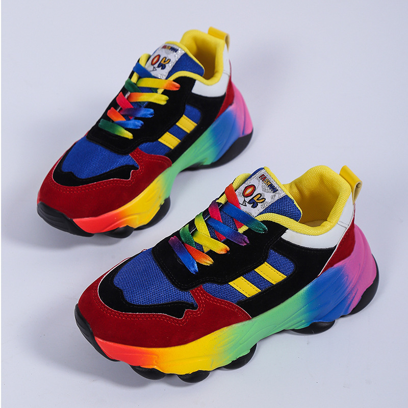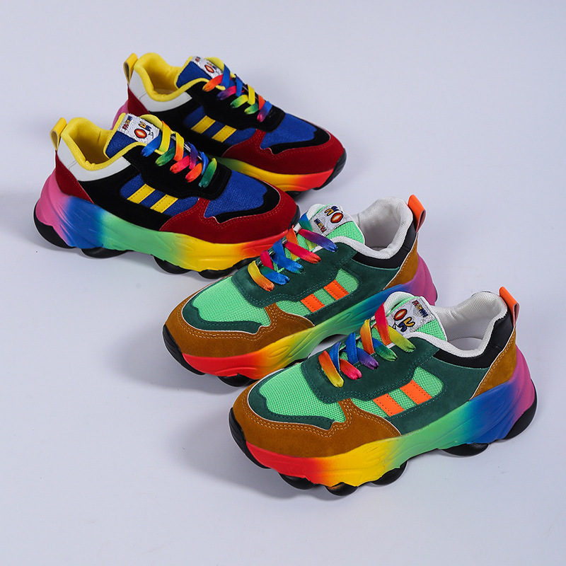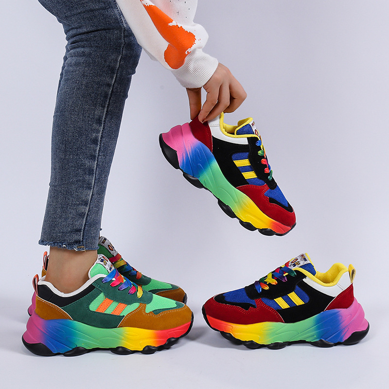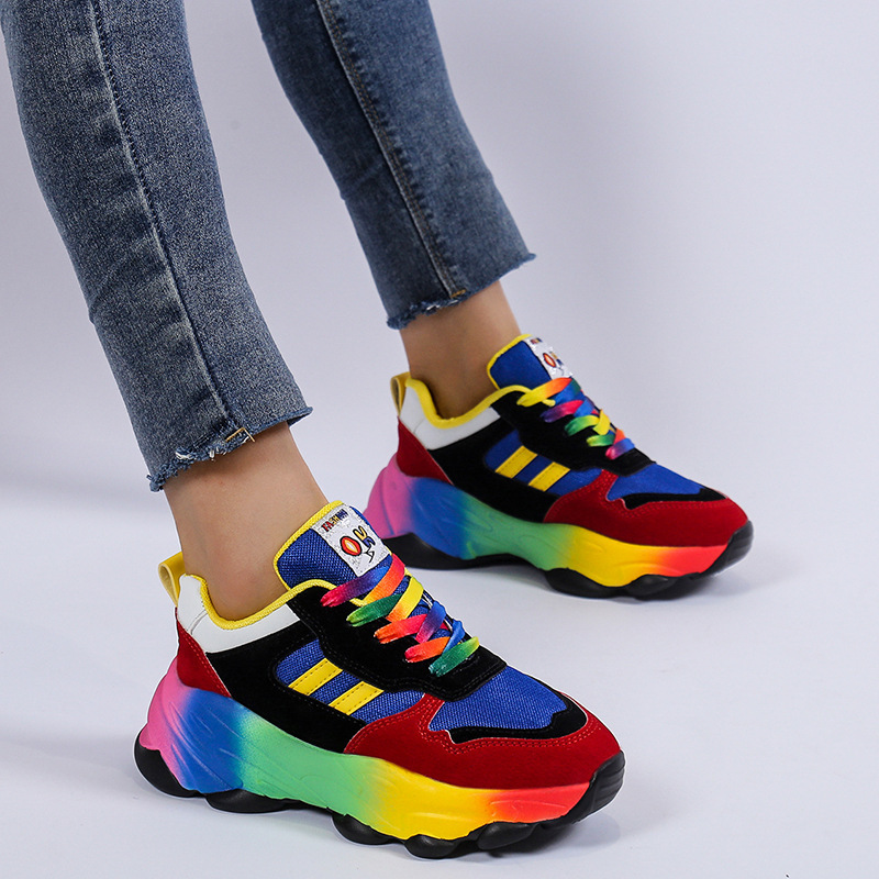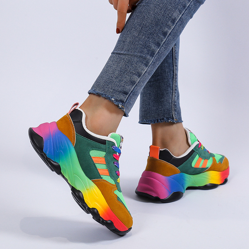 Plus Size Women'S Fashion Sneakers | Breathable Knit Lace-Up Shoes with Colorful Platform Sole, Round Toe, All-season, Sports Style, EVA Upper, Mesh Inner, EVA Insole, Rubber Sole