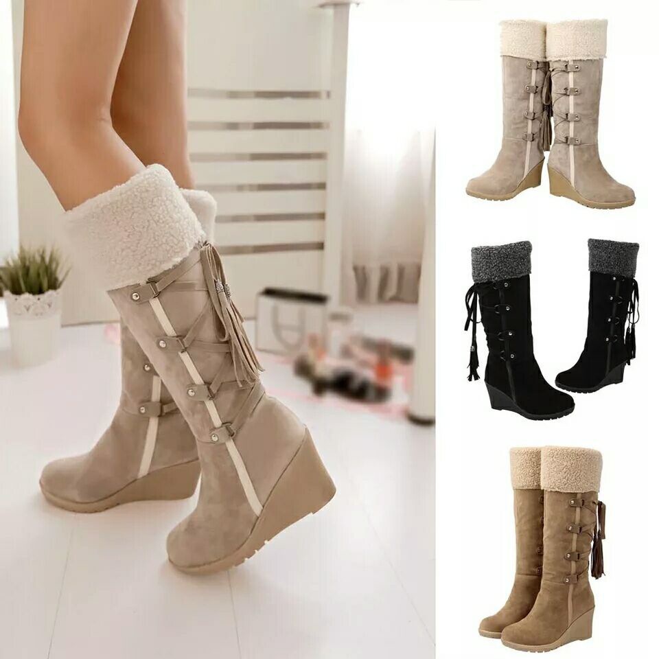Women's Boots Tall Winter Snow Boots- Plus Size Heeled Mid Calf Boots for Women, Botas De Invierno Elegantes, Items Non-Slip Warm Boots