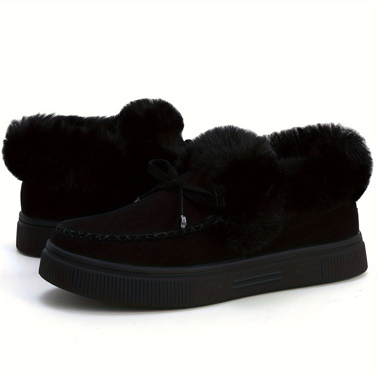 Winter Flat Boots Warm Durable Shoes Casual Fashion Fur Lining Ankle Snow Boots Loafer Flats Platform Thick Plush Shoes For Women