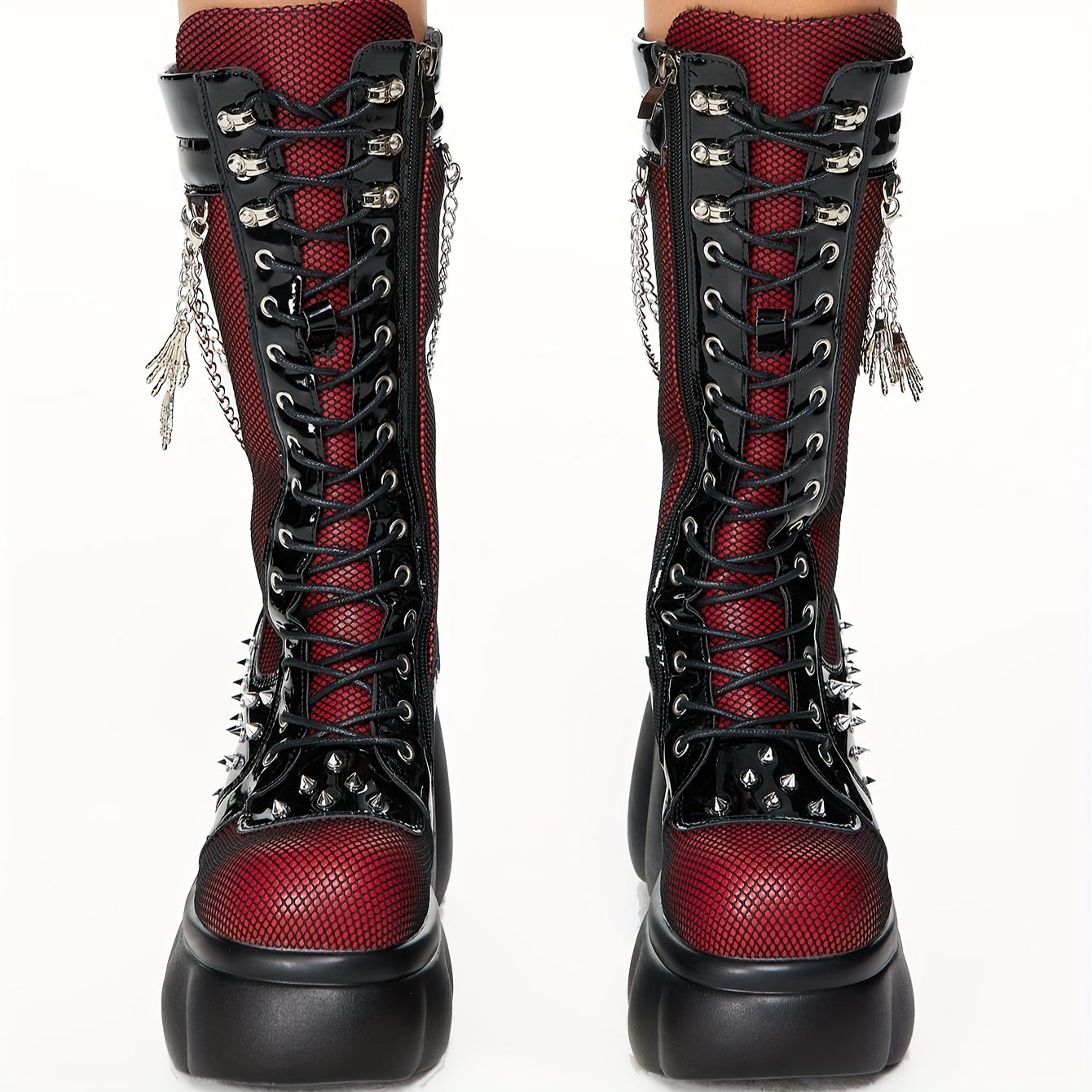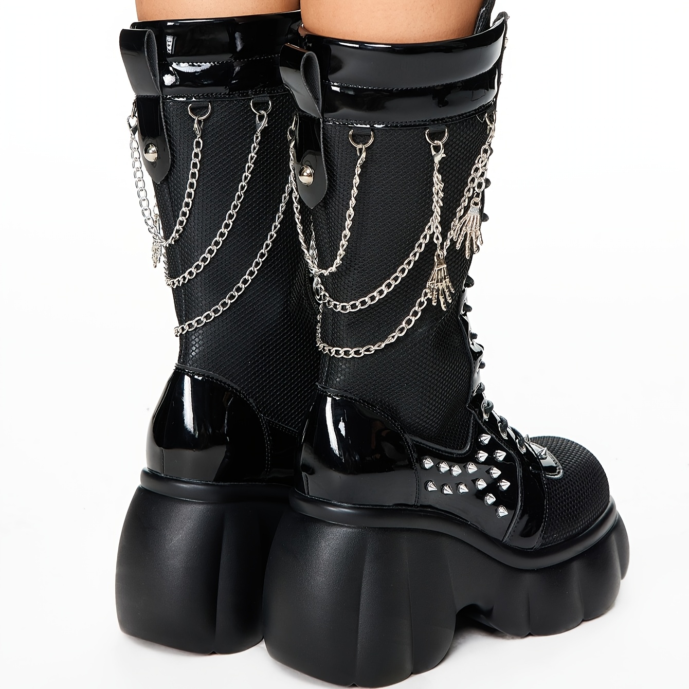 Women's Chunky Platform Combat Boots with Studded & Chain Details - Lace-Up & Zipper Round-Toe Ankle Booties, Thick Heel Motorcycle Boots Suitable for Riding, Casual & Edgy Outfits, Women Shoes