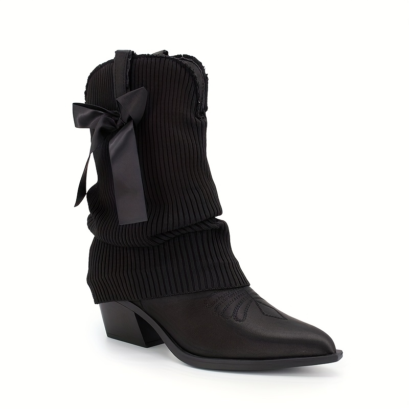 Ladies' Sweet Western-style Pointed Toe Chunky Heel Ankle Boots | Pastel-colored, Zipper Closure, Elegant Solid Color, Spring Season Dress Shoes