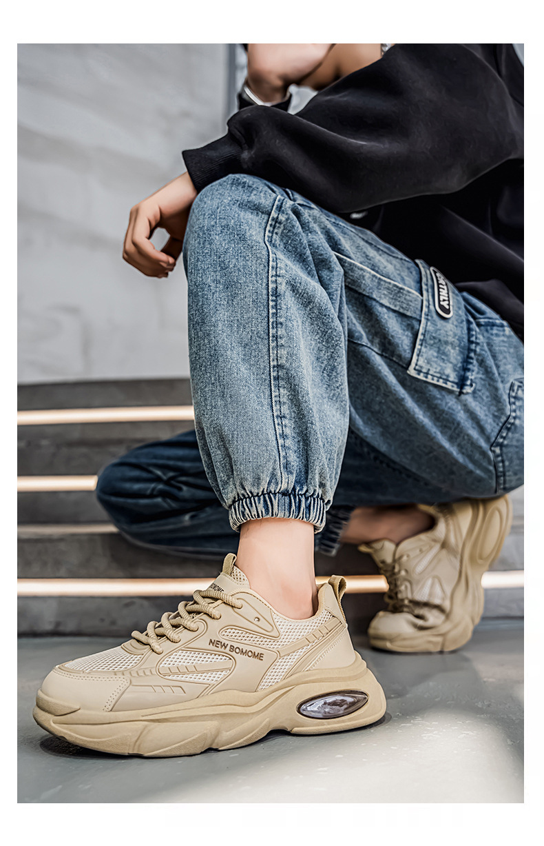 Men's & Unisex Thick-Soled Sneakers - Breathable Upper & PVC Sole, Low-Top Lace-Up Casual Running Shoes Suitable for Gym,, Casual Attire - Heavy Tread Dad Sneakers