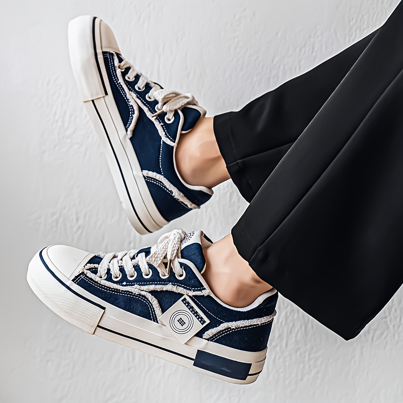 Men's and Women's Low-top Sneakers- Thick-soled Casual Shoes, PU/Fabric Upper, White and Black Colorway, Round Toe and Arch Support- All-season Outdoor/Office/Daily Wear- Minimalist White Lace-up with Cushioned EVA Insole- Unisex Low-top S