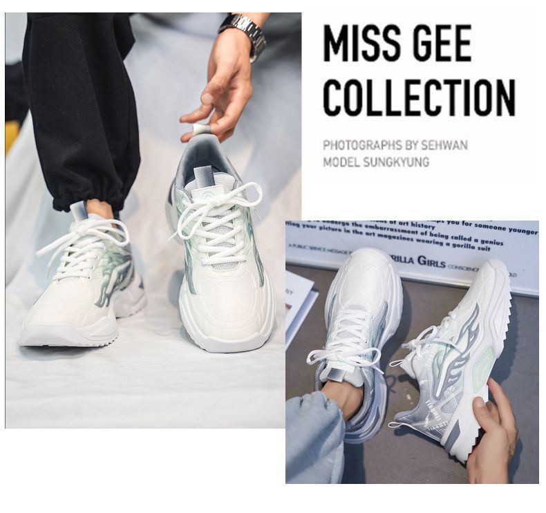 Men'S Breathable Trendy Dad Shoes | New Versatile Youth Casual Sports Shoes with and PVC Upper, Lace Closure, Low Top Design, Solid Color Pattern, Suitable for Spring/Fall