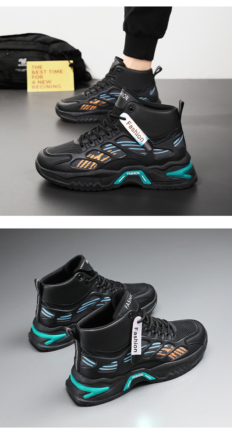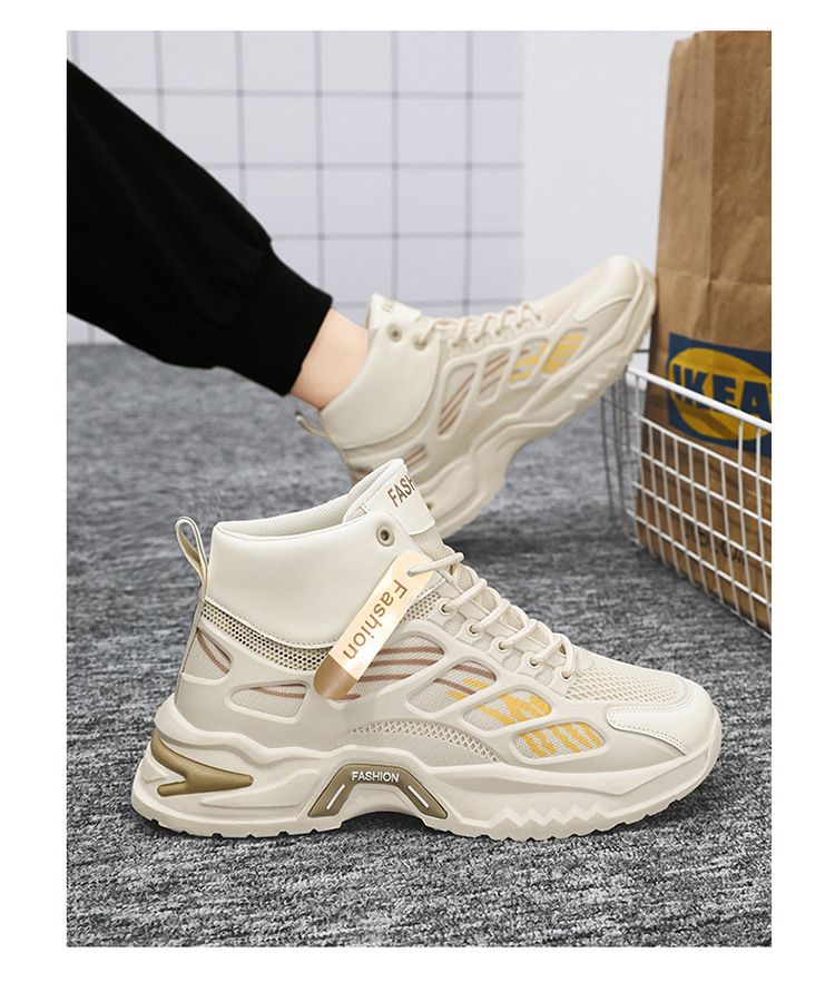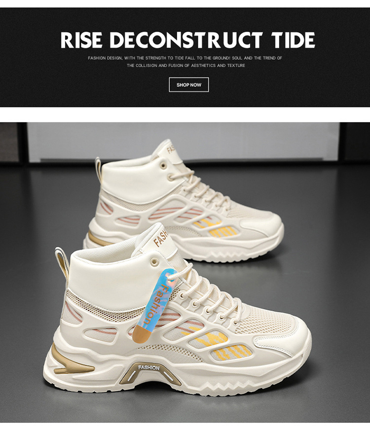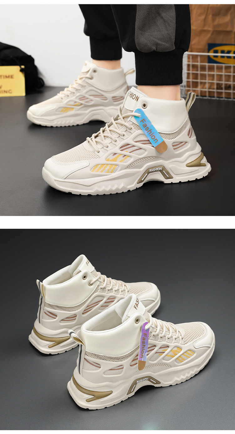 New Men'S High-top Dad Sneakers | Thick-soled, Breathable Mesh, Trendy Versatile Casual Shoes, and PVC Upper, Lace Closure, Spring/Fall Season