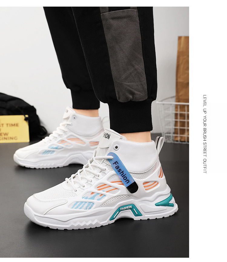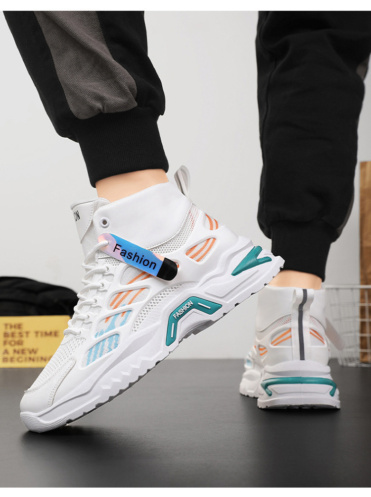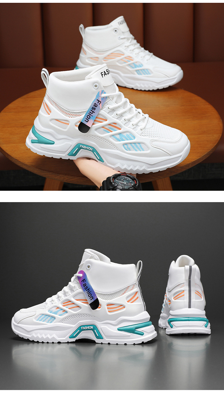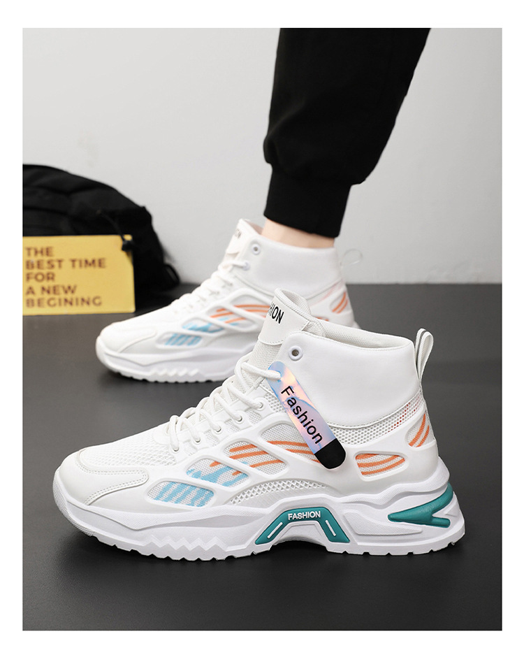 New Men'S High-top Dad Sneakers | Thick-soled, Breathable Mesh, Trendy Versatile Casual Shoes, and PVC Upper, Lace Closure, Spring/Fall Season