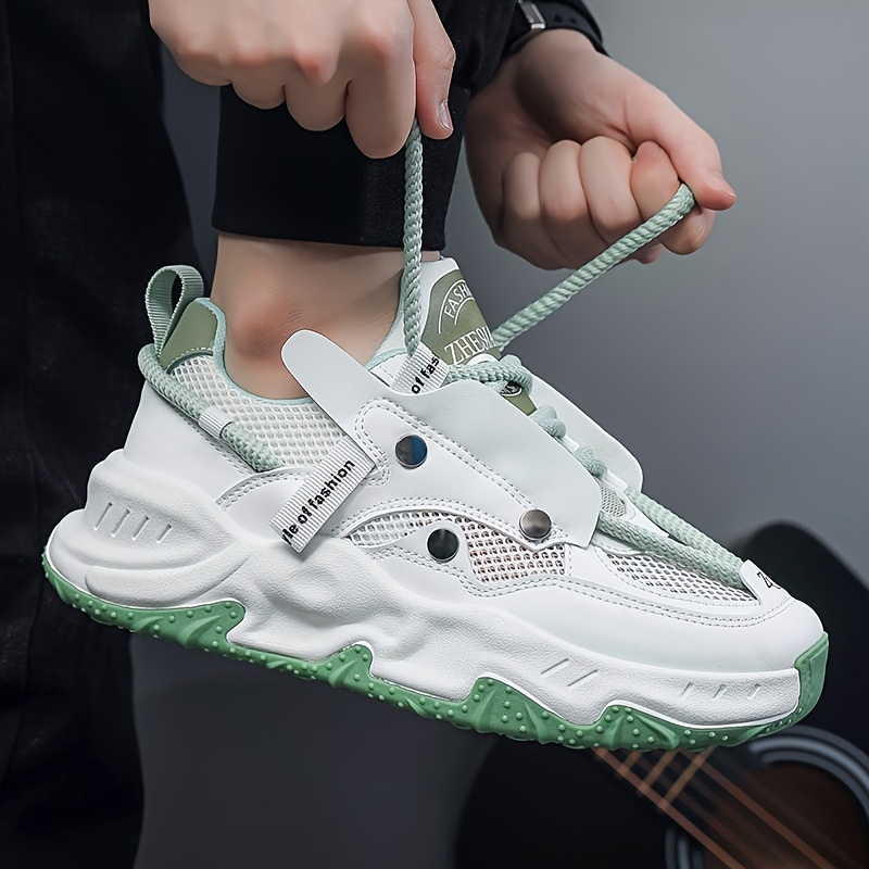 Men'S Low-Top Breathable Skate Sneakers - PU Mesh & Synthetic Upper, Durable PVC Sole, White with Brown Accents, Classic Fashion Sneakers for Casual, Running, Training & Workouts, Skate Shoes, Everyday Footwear, Sporty Design, Comfortable Fit