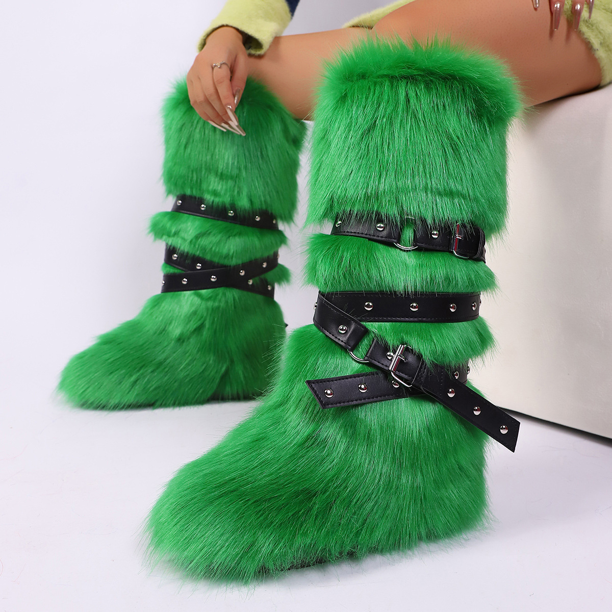 Women' Winter Fox Over-the-Knee Boots with Thick Sole & Plush - Slip- Round Toe Boots Suitable for Weather, Cozy Thick Sole Heel, Hand Washable Microfiber for Parties, Casual Attire, and Floors, Women Shoes